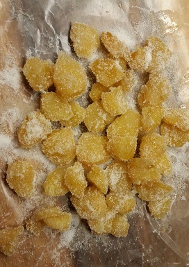 I just realized that I had some ginger root in the refrigerator. I had been having severe nausea for several days, so I bought it to make candied ginger. Of course, I forgot I bought it. Because that’s what I do.